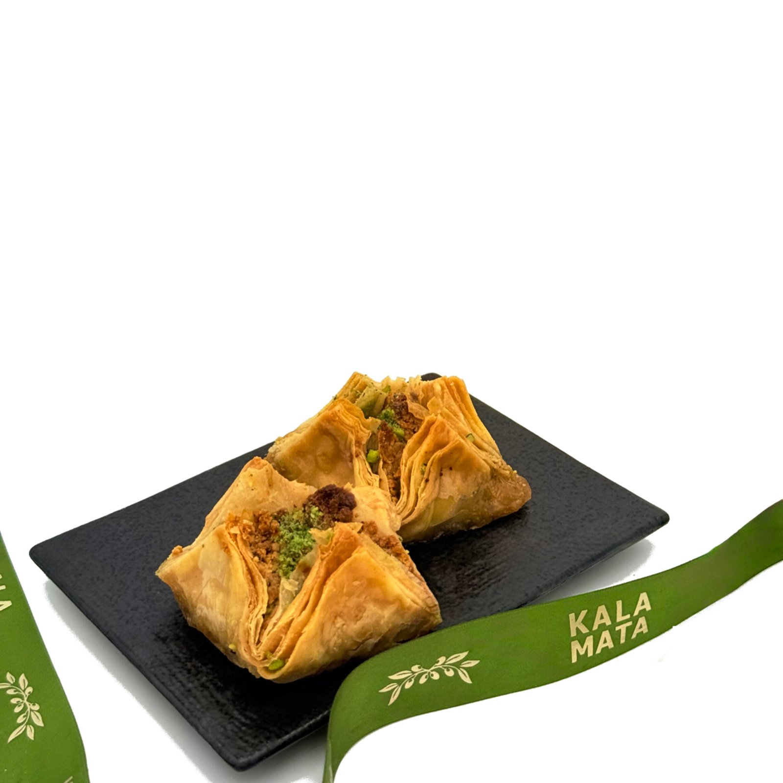 Hand crafted Mediterranean pastries made from thin layers of filo pastry, filled with , skillfully baked and topped with sweet syrup.