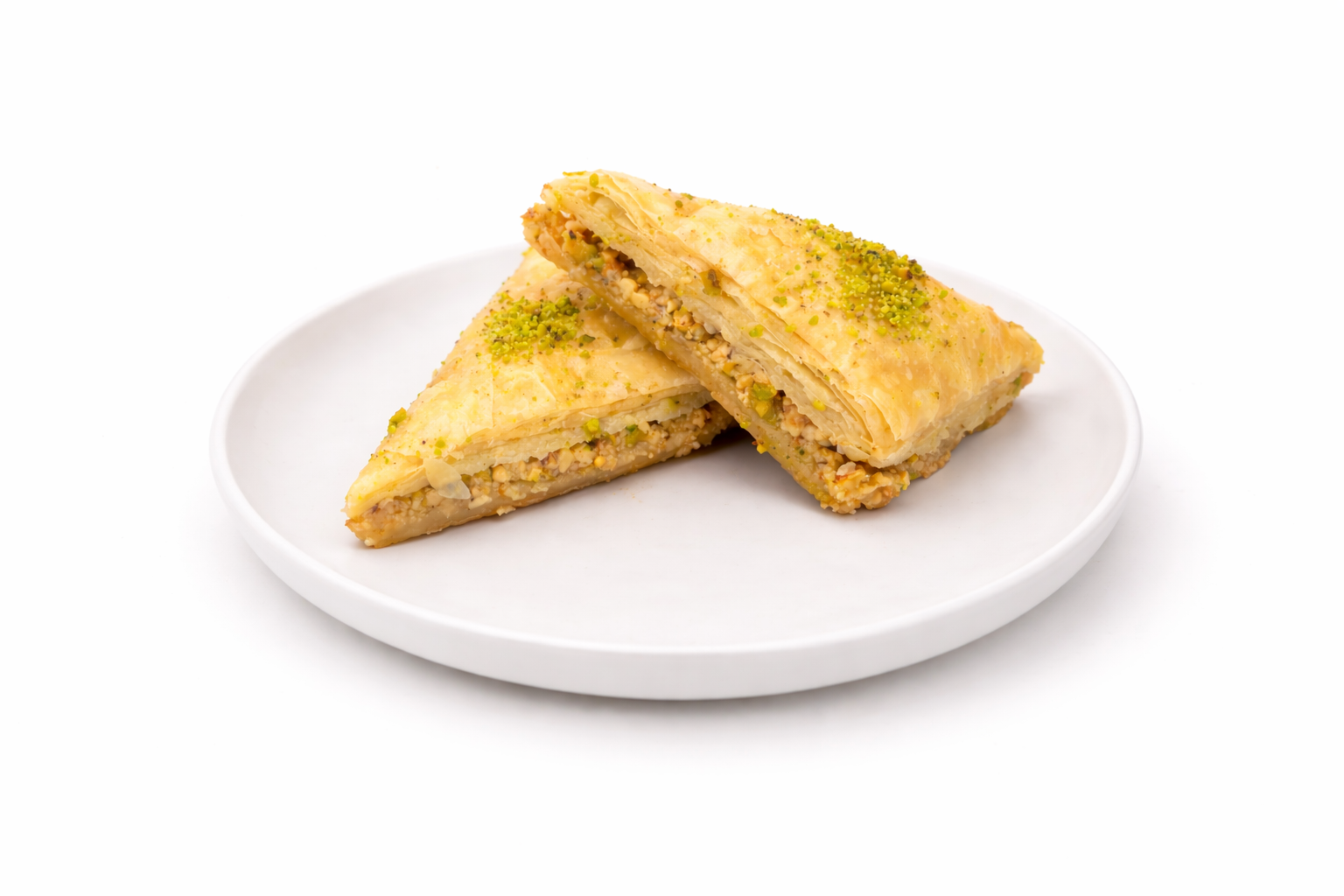 🍯🌰💚 Delight in the crunchy layers of golden pastry, filled with rich pistachios and kissed with fragrant rose and orange blossom.