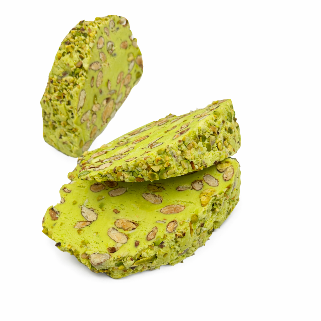 🥜 A traditional Italian nougat packed with crunchy almonds and pistachios, offering a chewy, nutty, and richly satisfying indulgence.