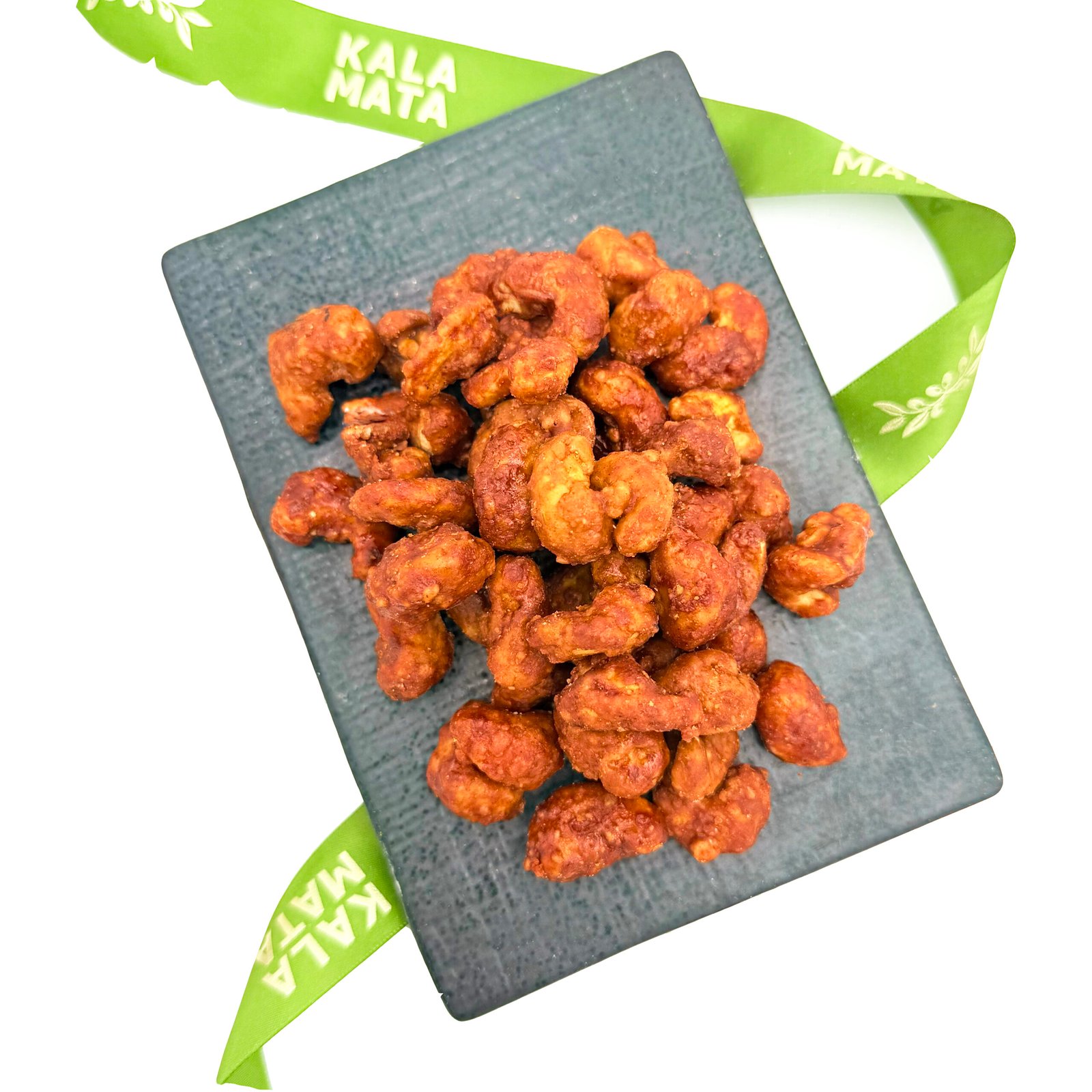 We take roasted cashews and season them with our special chili flavoring for those who like their snacks with a bit of kick.