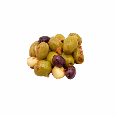 Olives, Lemon zest, Oregano, Olive oil, Vinegar, Garlic, Salt, Pepper