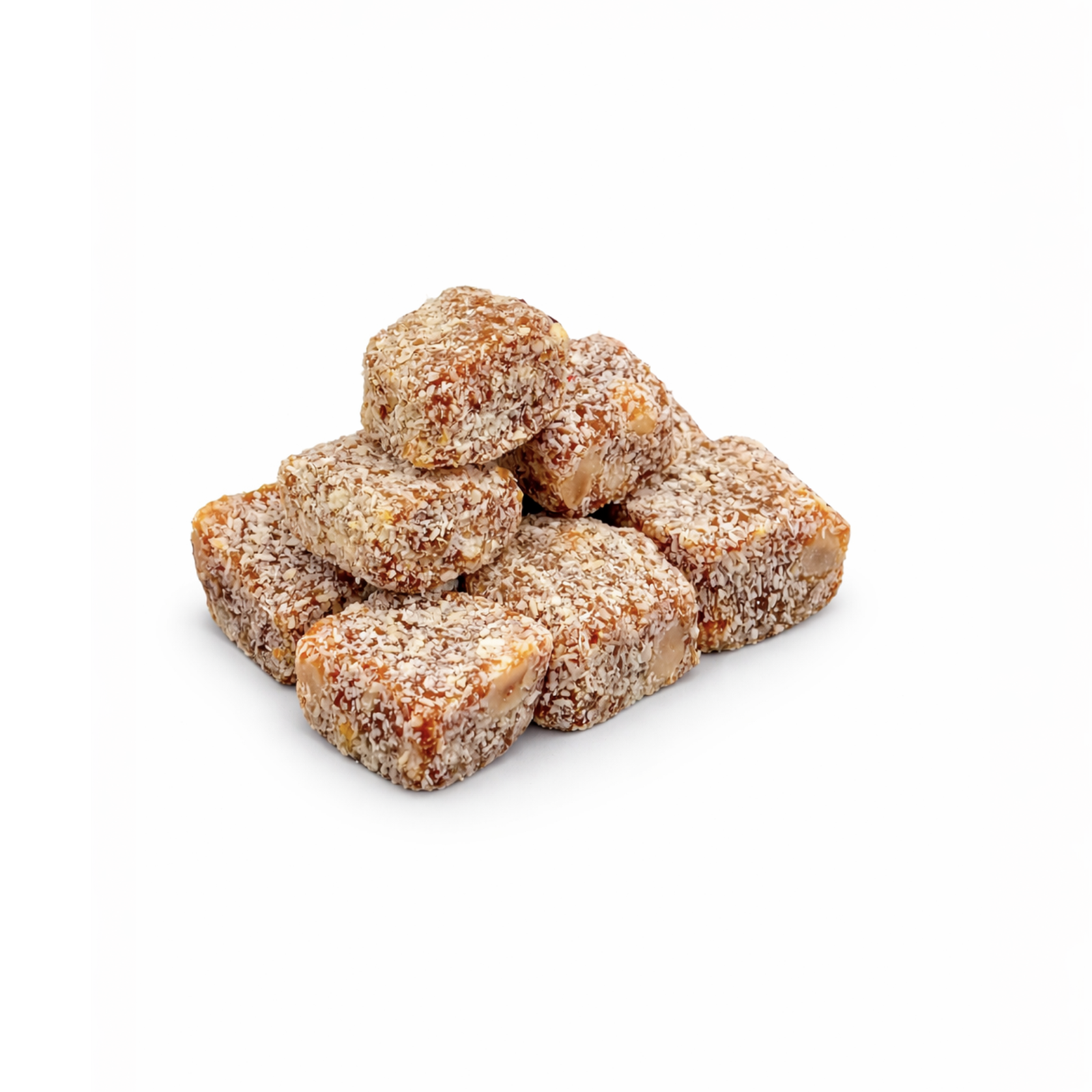 COCONUT, Sugar, Water Hazelnut (10%), Maize Starch, Acidity Regulator;Citric Acid Desiccated Coconut(7%), Glucose syrup Cinnamon powder, Ginger powder